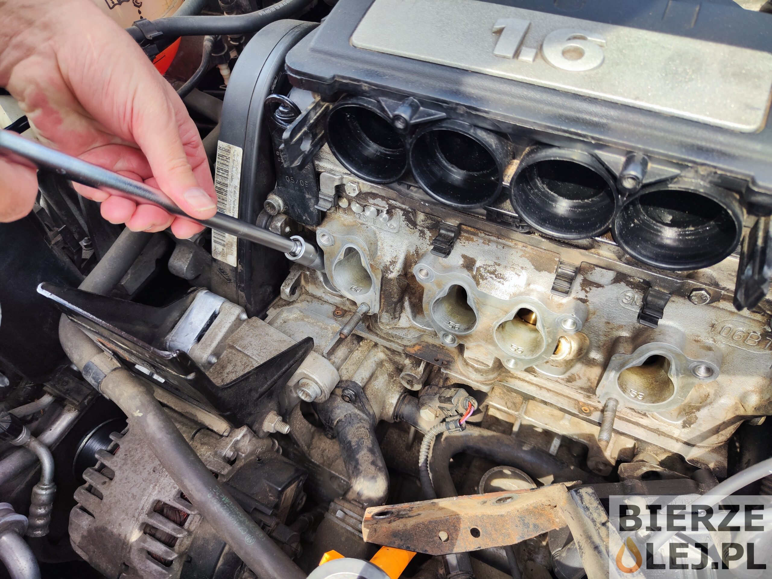 Za pomocą klucza do świec odkręć i wyjmij świece zapłonowe ze wszystkich cylindrów. Opcjonalnie możesz zrobić zdjęcia tłoków kamerą inspekcyjną.